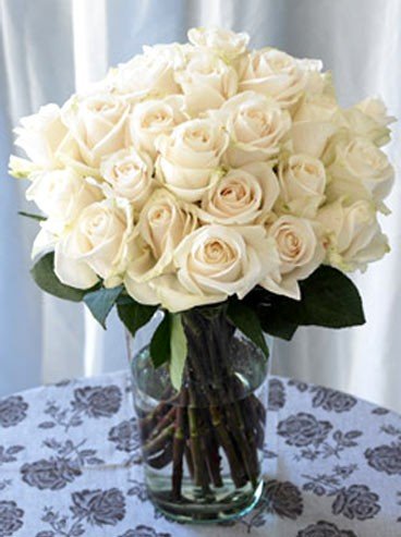 Bring a smile to their face with 25 Long Stem Roses. White roses are a symbol of innocence and purity. They are often used for weddings or to signify new beginnings. Order some of these fresh roses to light up any room, or brighten someone's day! When you order fresh roses from 48LongStems, you buy roses that will make a lasting impression! These fresh flowers are hand selected from our farms and